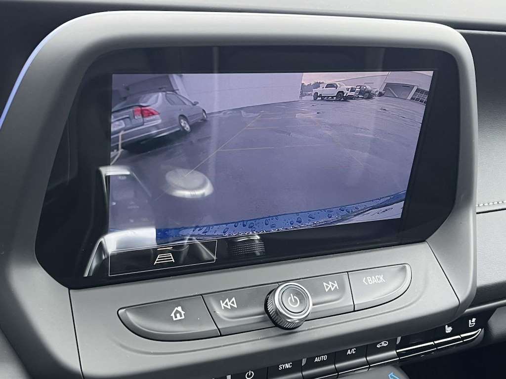 • The vehicle is equipped with a camera that displays an image of the area behind the vehicle on an interior display.